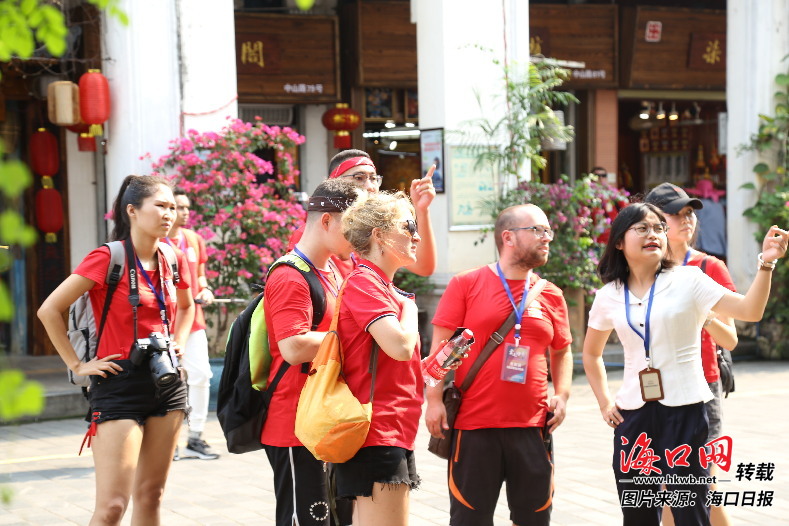 4月18日下午,海南大学加拿大籍留学生艾力克·邓肯跟其他留学生一起来到骑楼老街游赏。他们用数码相机捕捉骑楼建筑的风采,通过手机向自己国家的人民实时播放一路的见闻。“我们在这里见识了海南特有的黎族服饰,参观了特色民宿,还品尝了椰汁清补凉,感觉棒极了。”艾力克·邓肯说,游览骑楼是他在海口半年来最震撼的体验,这里才是最地道的海口味道。