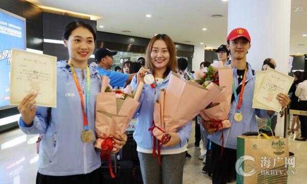 海广网9月17日消,用灿烂的笑容映衬鲜花,用热烈的握手撑开欢迎横幅,9月17日上午,海口市艺术团代表海南赴郑州参加第十一届全国少数民族传统体育运动会勇夺“表演项目一等奖”载誉归来。