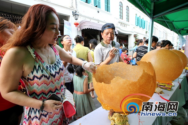 海口市民和游客在现场品尝海南美食煎堆。南海网记者陈望 摄
