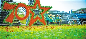 记者了解到,连日来,经过海口园林工人的努力,西海岸、国兴大道等重点点位都已摆上了以庆祝新中国成立70周年为主题的花卉景观,以喜庆祥和的气氛迎接新中国成立70周年。