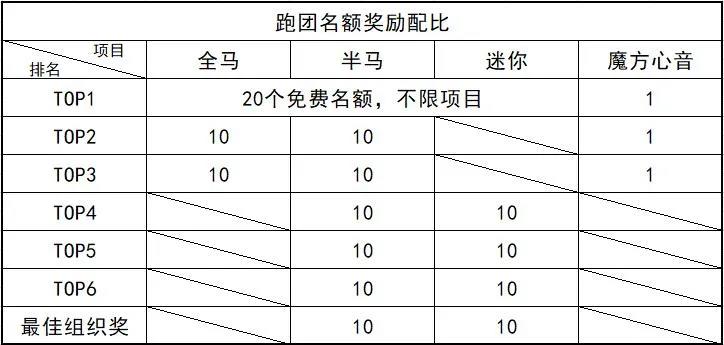 (一)本次活动共提供500个2020海口马拉松线下名额作为奖励,其中个人完赛抽奖名额360个,跑团奖励名额140个;奖励评选细则见本次比赛规则,具体名额分配如下表: