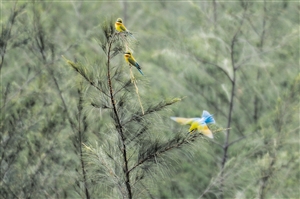 蜂虎羽毛艳丽、色彩斑斓,被誉为“中国最美小鸟”,每年的4月至7月是蜂虎繁殖的季节。2018年5月,海口五源河下游发现栗喉蜂虎和蓝喉蜂虎,引起社会广泛关注。今年3月29日,海口市秀英区湿地保护管理中心在五源河下游为蜂虎营造栖息地。栖息地营造完成后,吸引了许多蜂虎在此筑巢繁殖。