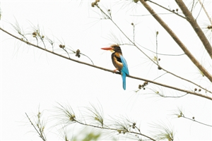 ▼栖息在五源河国家湿地公园的白胸翡翠。