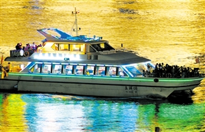 9月14日晚,在海甸溪上,一艘观光游览船正驶向海口湾。中秋节许多市民乘船赏月,观看沿岸绚丽的霓虹景观灯。