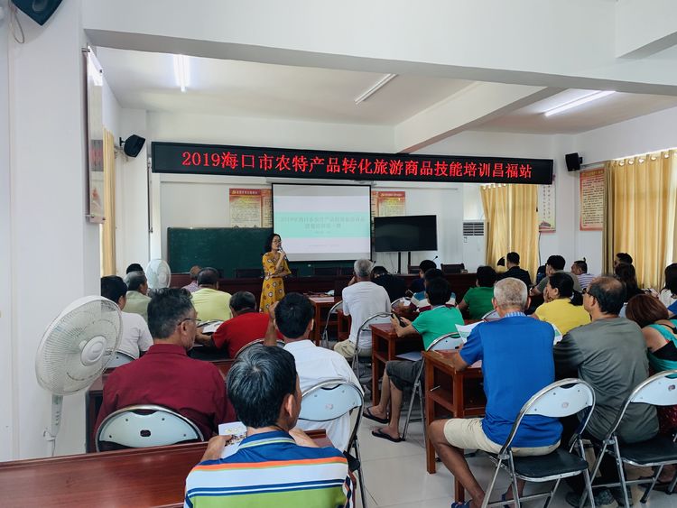 为加快推进旅游产业扶贫工作,带动农民就业增收,9月16日下午,由海口市旅游和文化广电体育局组织开展的“农特产品转化旅游商品技能培训”在美兰区大致坡镇昌福村正式启动,村委会干部、乡村振兴工作队成员、种养殖合作社成员、村民和贫困户共计50余人参与了培训。