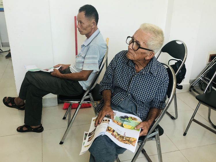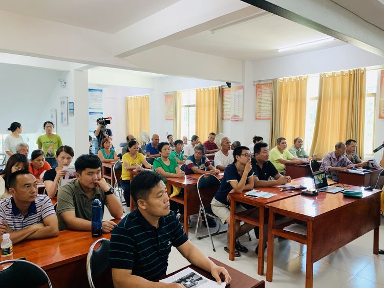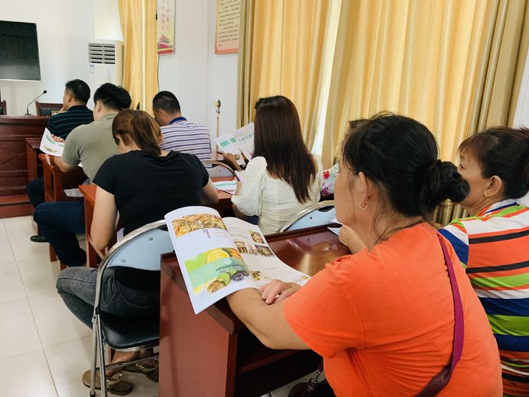 村民们边听讲边阅读课件