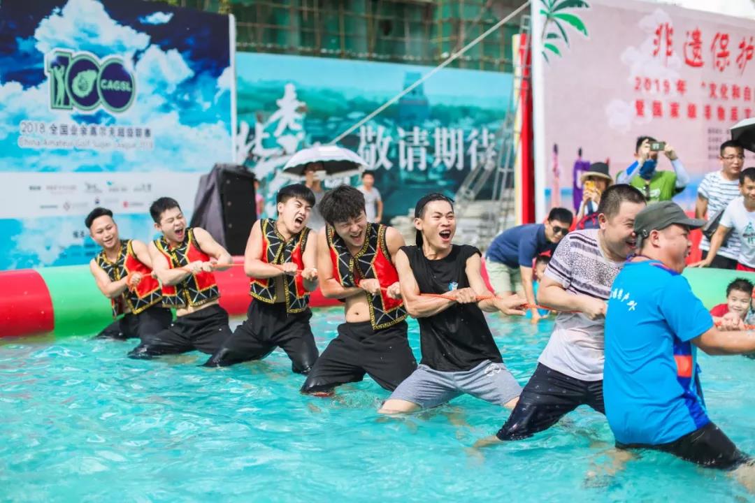 观澜湖华谊冯小刚电影公社举办了端午系列丰富多彩的活动,增强游客的体验。在泼水狂欢节上游客可以体验到旱地龙舟、水中拔河、钓粽子、水枪大战等好玩的项目,市民游客全身心的投入到活动中,一声声“加油”,把现场的气氛推向高潮,除此还有海南非物质文化遗产斋戏精彩上演。