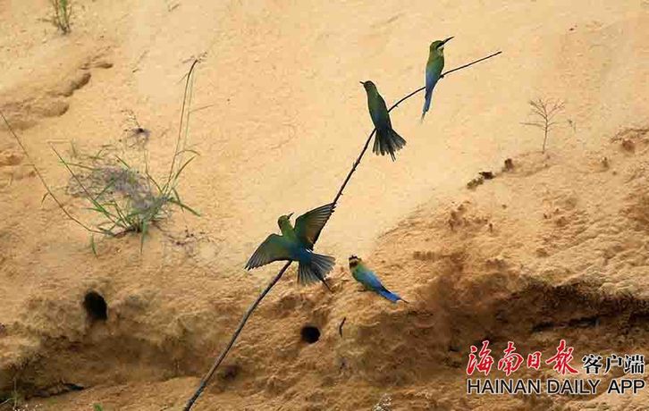 6月17日,在海口市五源河国家湿地公园蜂虎栖息地,蜂虎鸟成群结队觅食,时下正是蜂虎鸟的繁殖期,蜂虎鸟的数量不断增加。