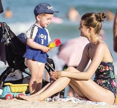 三亚大东海海滩,外国游客在沙滩上休闲。 本报记者 武威 摄