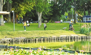 生态修复后的美舍河凤翔湿地公园成为海口人休闲好去处。