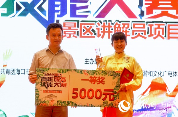 人民网海口9月25日电(枉源) 9月25日,2019海口青年服务技能大赛-景区讲解员比赛决赛在海口举办,来自海口景区(景点)从事景区讲解的选手角逐比赛。最终,来自海南热带野生动植物园的符惠娟获得大赛第一名。