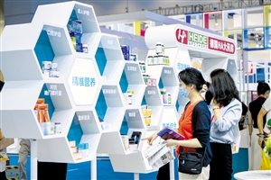 在首届中国国际消费品博览会高端食品保健品展区,来自全球各地的医药保健展品吸引参会人员的目光。 本报记者 王程龙 摄