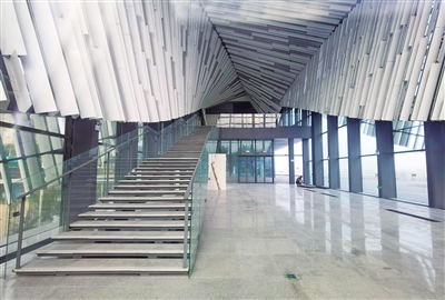 完工后的游客中心造型如同“领结”般镶嵌在海口的西海岸,不时有旅客在现场拍照留影。
