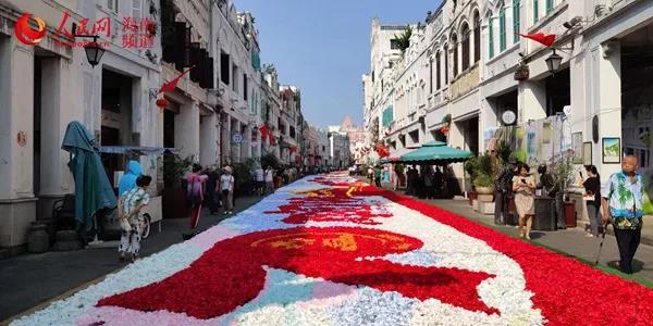 原标题:美美美!海口骑楼老街现巨幅“花海”喜迎国庆!