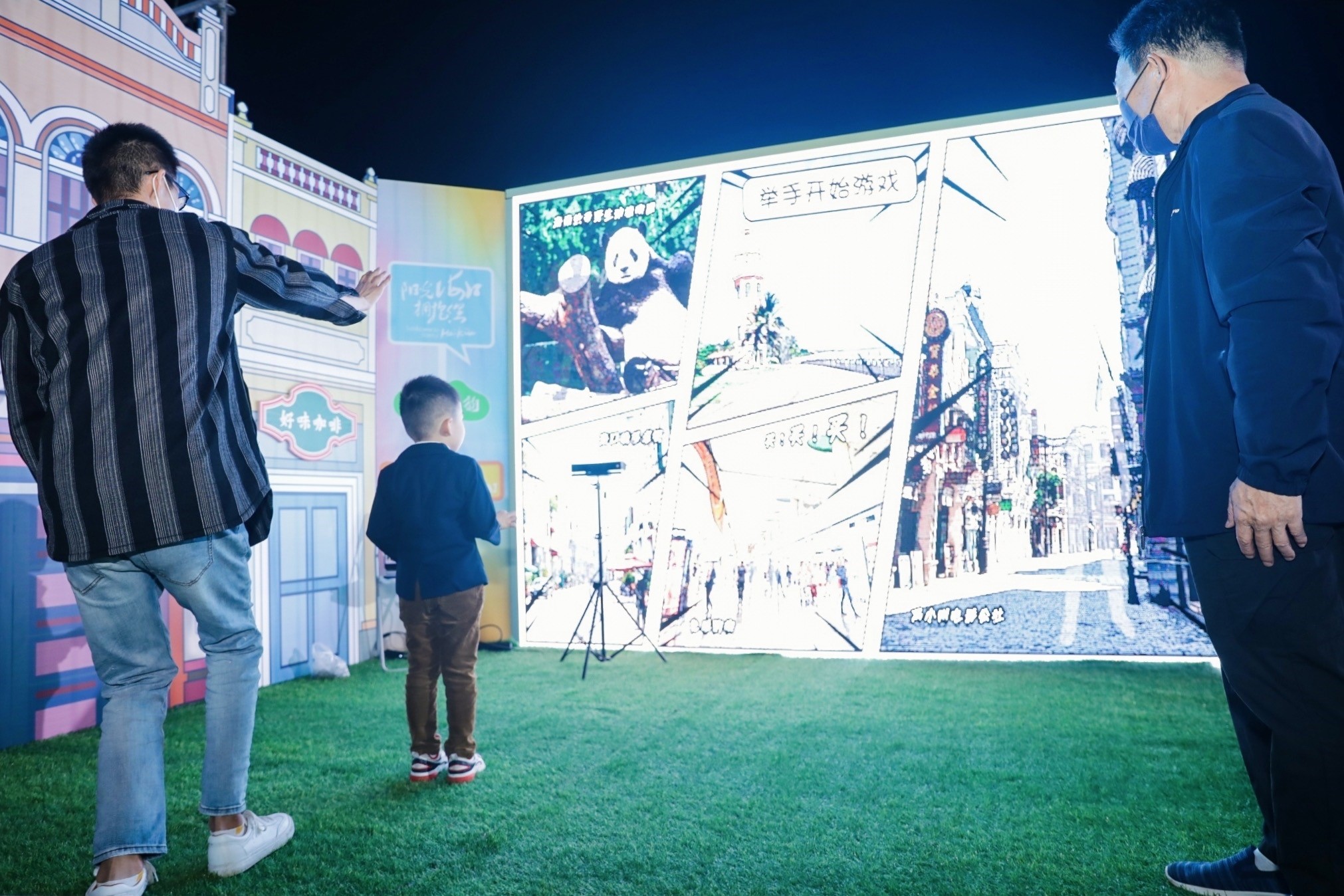 海口独具南洋风情的特色展台,吸引众多游客前来打卡体验,仿佛让人置身在悠闲的骑楼老街上。互动体感拍照这一创意玩法吸引了很多市民游客前来排队争相体验,通过AR技术结合海南热带野生动植物园、海口骑楼老街、免税购物、西海岸观海台、冯小刚电影公社等海口特色旅游景点,搭配LED屏互动体感游戏,现场市民游客通过摆出指定拍照姿势,即可感受云游海口,打卡海口特色景点,完成后可通过扫码获取电子照片。