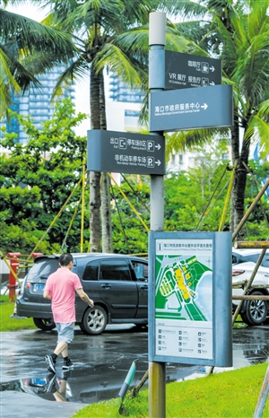 ▶海口市民游客中心设置的中英文引导牌,有效帮助前往办事群众找寻相关场地。