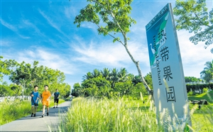 在海口的各大公园入口,如万绿园、五源河湿地公园、海口白沙门公园、海口美舍河凤翔湿地公园等,都能看到中英文对照的简介标识标牌,再跟着景观平台(Landscape Platform)的指向牌走,就可轻松开启公园休闲之旅。