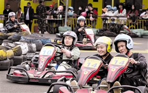⑦2月5日,市民游客在拓展项目基地体验卡丁车。 本报记者 张俊其 摄