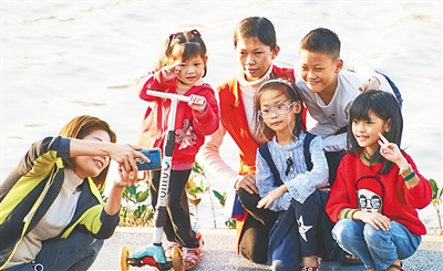 2月4日,游客来到海口红城湖湿地公园惬意“打卡”。本报记者 封烁 摄