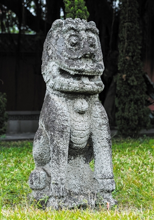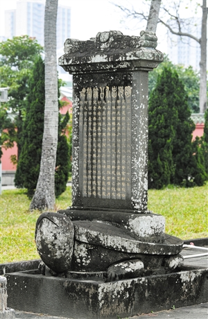 近日,午后的海口,稀稀疏疏的阳光透过树叶洒落,传来阵阵暖意。记者来到海瑞墓园的神道两旁,倍感诧异的是,海瑞墓神道两旁的石像生的数量和种类与明朝规定的身份、级别不符,应该只能站立石人、石虎、石马、石羊、石望柱各一对,但现在神道南北两旁从东至西依次站立着一组石翁仲、石门当、石龟(一只)、石虎、石马、石羊、石狮子等石刻,不仅多了一对石门当,还多了一对石狮子和一只石龟。问及海瑞墓园管理处原主任陈涛,这有悖常规的摆放是为何?陈涛解释,神道旁放置的石狮子要么是原位置在建筑的门前,要么是后代人因不知情,误将其放入此处。随后,关于各种石像生的故事和寓意,陈涛也尽数娓娓道来。