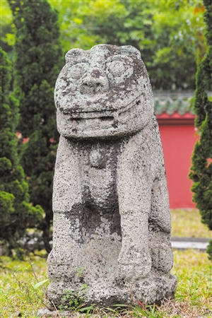另外,海瑞墓神道的南侧与石门当相距约8米处,放置一件石龟,头朝向西方,龟背上的花纹已模糊不清,长0.55米,龟背宽处0.3米,显得非常矮小,与旁边这些形制高大、气魄的石马、石人、石虎相比极不协调。陈涛表示,据说这是1966年海瑞墓的石龟座被砸,人们失去了祭祀的“三皇”之载体,当地群众又特别信奉龟能显灵,所以就自发地刻凿一石龟来祭祀神灵,久而久之,就成了神道上的神物了。