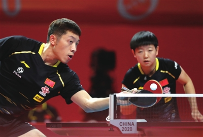 2020年,中国乒乓球队在陵水举行奥运模拟赛。新华社发