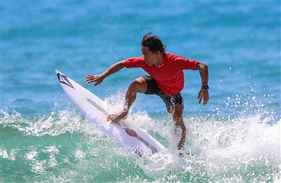 海南国家冲浪队队员邱灼在万宁训练。 记者李昊 摄