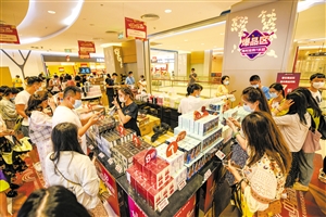 ④今年“五一”期间,在海口日月广场免税店内,众多游客前来购买免税商品。 本报记者 王程龙 摄