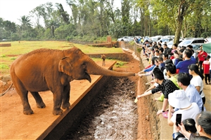 ⑤游客在海南热带野生动植物园游玩。