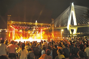 ⑥4月30日晚上,“红”动外滩街头艺人挑战赛在海口湾举办,多名街头艺人同台竞艺,丰富多彩的表演引来众多市民游客驻足观看。