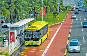 2021年9月22日,公交车停靠在龙昆南路港湾式公交车站。 海口融媒-海口日报记者 康登淋 摄