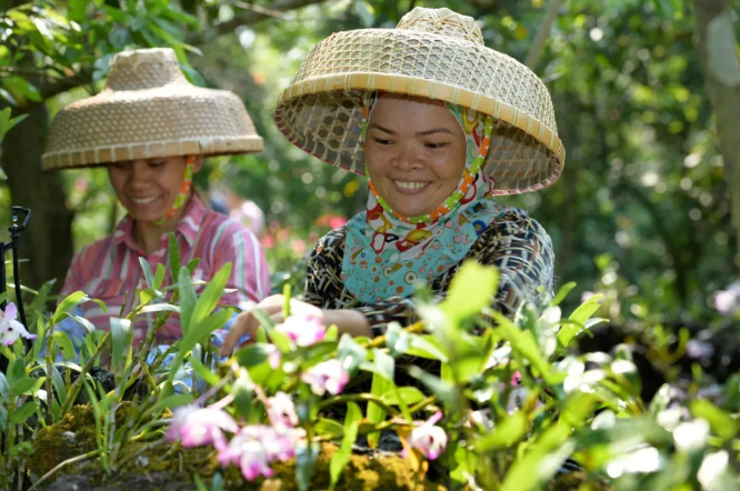 施茶村石斛种植园里,村民在种植石斛。海口日报记者黄一冰摄