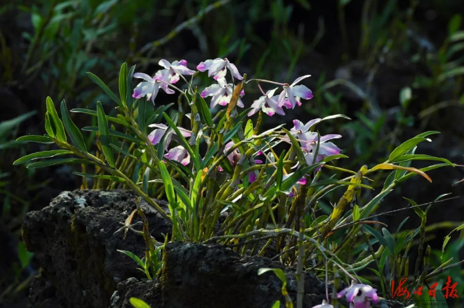 石山镇施茶村火山石斛园,石斛花盛开。海口日报记者 张俊其 摄