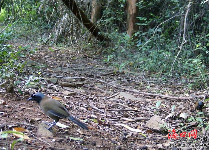 ◀海口五源河国家湿地公园通过红外触发相机拍摄到的黑喉噪鹛。 (海口畓榃湿地研究所供图)