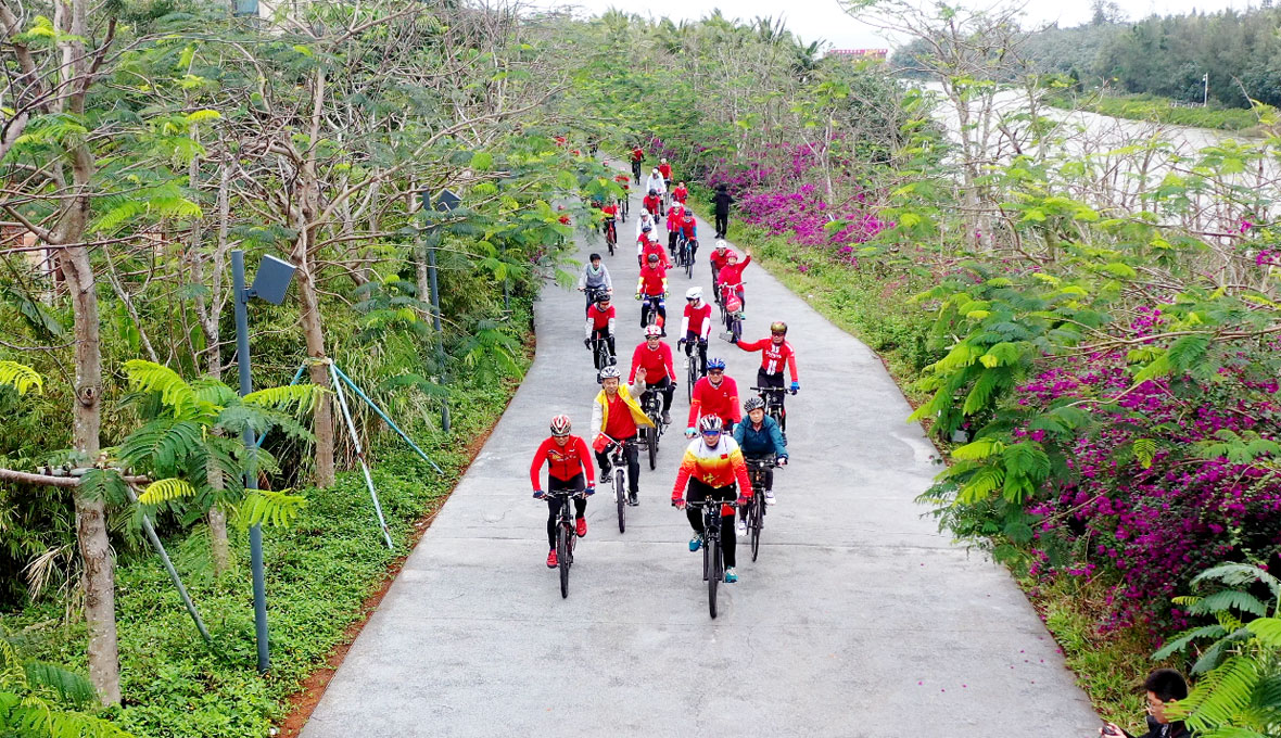 大家在骑行中既能欣赏到沿途各景区的美丽风景,一览海口最美绿道的春光好景色,还可品尝到骑行休息点提供的特色美食,补充能量继续前行,更有沿途乐趣多多的互动游戏,队友们相互帮助,携手共进。一路骑行,开心畅快。骑友可以在骑行线路上一边领略大自然的风采,一边提升骑行技巧,两者相得益彰。