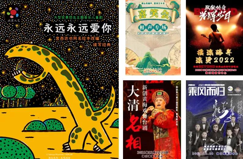 接连上演大型音乐诗剧《血沃中华》、“精彩中华”全国青少年艺术素质展演、浪漫舞剧《初恋》、《歌从草原来》内蒙古经典作品音乐会、南山风雨平,喜笑万年长北京喜笑会巡演海口站、话剧《家有九凤》、《燃情乐话》超燃电影音乐视听音乐会、儿童剧《永远永远爱你》、自然物语音乐会《春分夏至》、聆听合唱团音乐会、儿童剧《花木兰》、杭盖2021乘风而归全国巡演、“海纳百川 大爱无疆”—张鹤和她的朋友们新年交响音乐会、龙华区第八届免费开放培训成果汇报演出、第四届“金色夕阳”文化艺术节 系列活动等精彩节目。