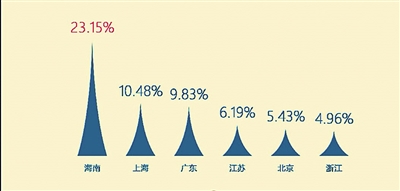 北上广依然是出游主力。《报告》显示,外省游海南的热门出发地中,排名前列的依次为上海、广东、江苏、北京、浙江。
