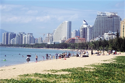 游客在三亚湾游玩。记者 沙晓峰摄