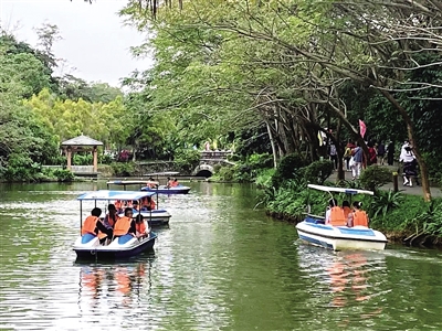 游客在兴隆咖啡谷游船赏景。万宁旅文局供图