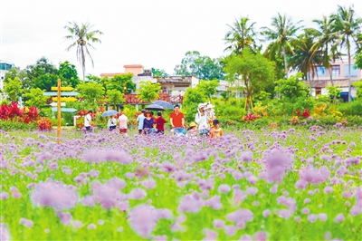 文昌市重兴镇加昌村因地制宜盘活资源,通过“公司+合作社”的方式创建三文共享农庄,在槟榔树下种植斑兰,打造乡村民宿、咖啡屋、斑兰美食一条街等文旅体验场所,让市民游客“望得见山,看得见水,记得住乡愁”。