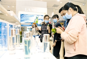 当天上午,记者在位于海口日月广场摩羯座的海控全球精品(海口)免税城看到,电子产品、香水、化妆品、太阳眼镜、进口酒等免税品琳琅满目,吸引了许多旅客前来选购。