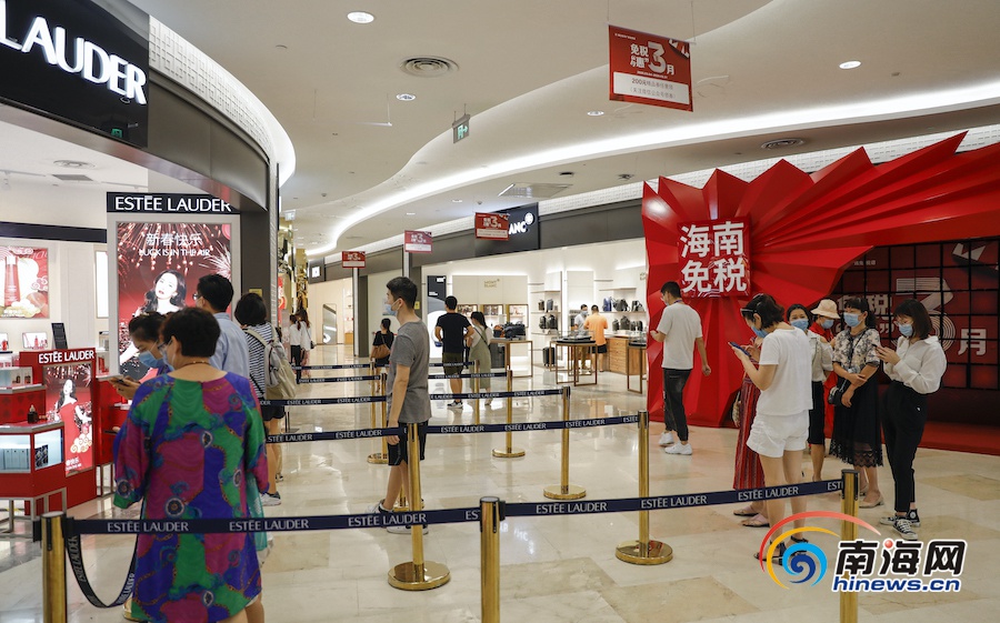 “我们成立防控监督检查小组,定时巡查、检查现场疫情防控工作情况。”中国旅游集团海南区域总部副总经理周领军称,复工后,海口日月广场免税店全面推行和实施“海南省健康一码通系统”,每个出入口都安排了专人扫描进店人员的个人健康码、测量、登记进店人员的体温和检查口罩佩戴情况,全店销售人员佩戴口罩手套,保洁人员定时对整个公共区域进行全面消毒。此外,免税店每个专柜都设置了一米栏保证顾客有间隔、有序地排队购物,每个专柜的收银台和服务台也都放置免洗消毒洗手液供客人使用。