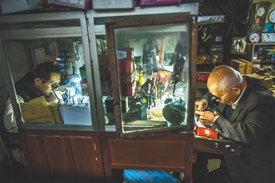 铺前骑楼老街老钟表店里的修表师傅。李幸璜 摄