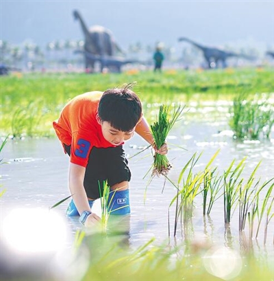 学生到三亚水稻公园体验水稻主题研学游。本报记者 封烁 摄