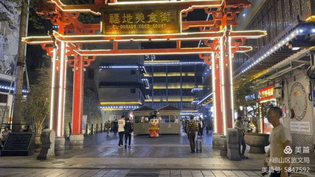 说到琼山的美食,怎么能少得了福地美食街呢?走进美食街,红色的大门楼、仿古建筑、青石板路,无不洋溢着厚重的人文历史气息。除了美食,国庆期间,琼台福地美食街还将举办海南琼剧表演。