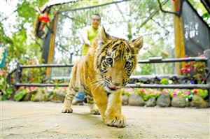⑤1月28日,海南热带野生动植物园内呆萌可爱的虎宝宝“多多”乔迁新居。本报记者 石中华 摄