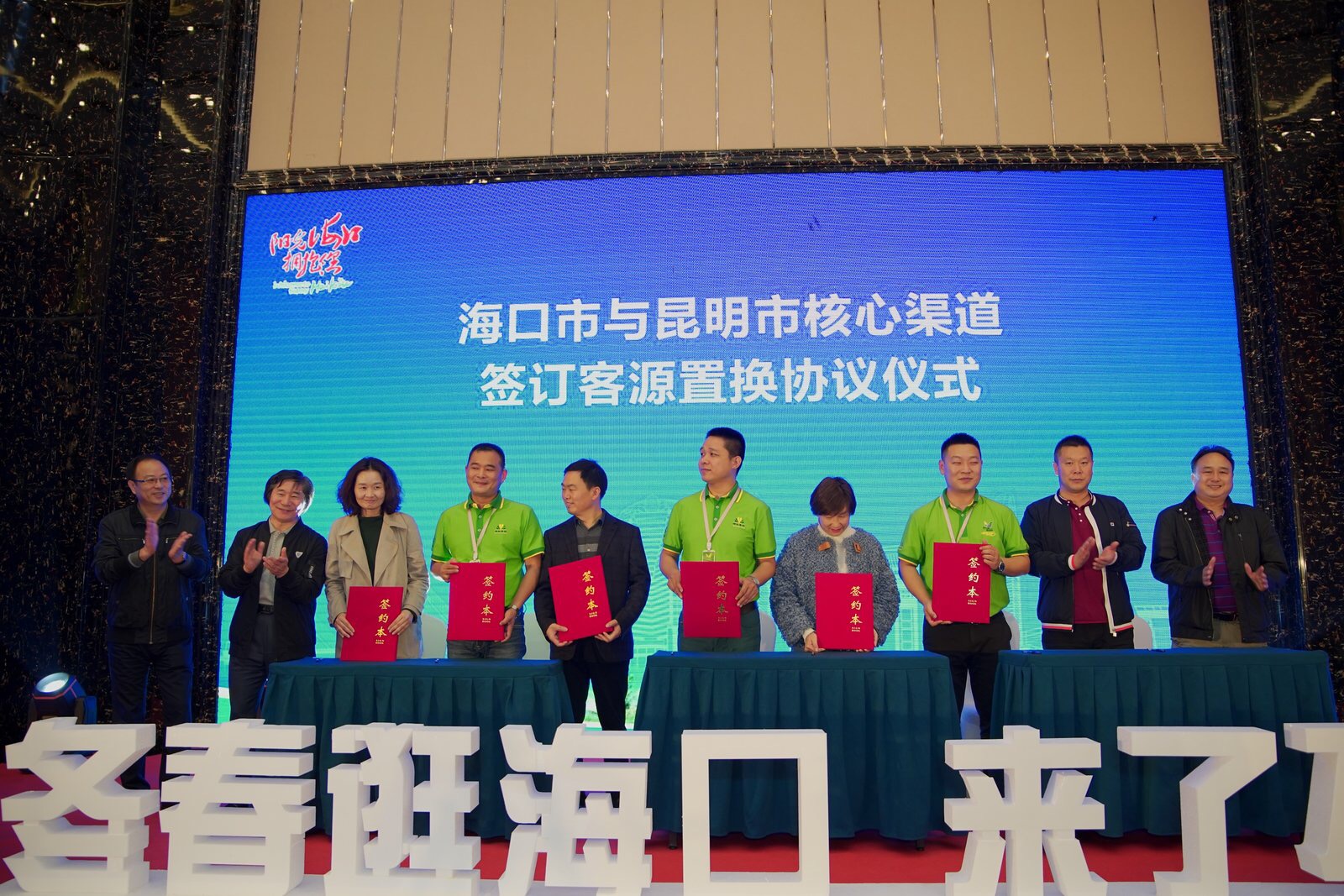 昆明、海口两地旅行商在推介会上签订协议,约定提供更多优质的旅游产品和服务,进一步推进客源互换。