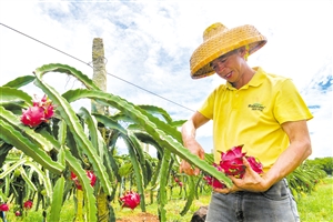近年来,橡胶和胡椒价格走低。2017年,吴宁和村党支部去省内外考察学习后,迅速转换思路。“我们党员要带头,迅速调整产业结构,带头创新种植火龙果。”吴宁对记者说。