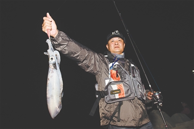 游客在分界洲岛钓到鱿鱼。童国强 摄