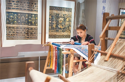 龙被精品展现黎锦风采。西海 摄